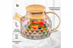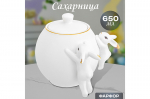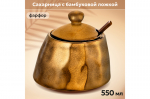 Сахарница 500 мл 15,5*11,5*12 см "Айсберг" с ложкой, дер. крышкой на дер. подставке