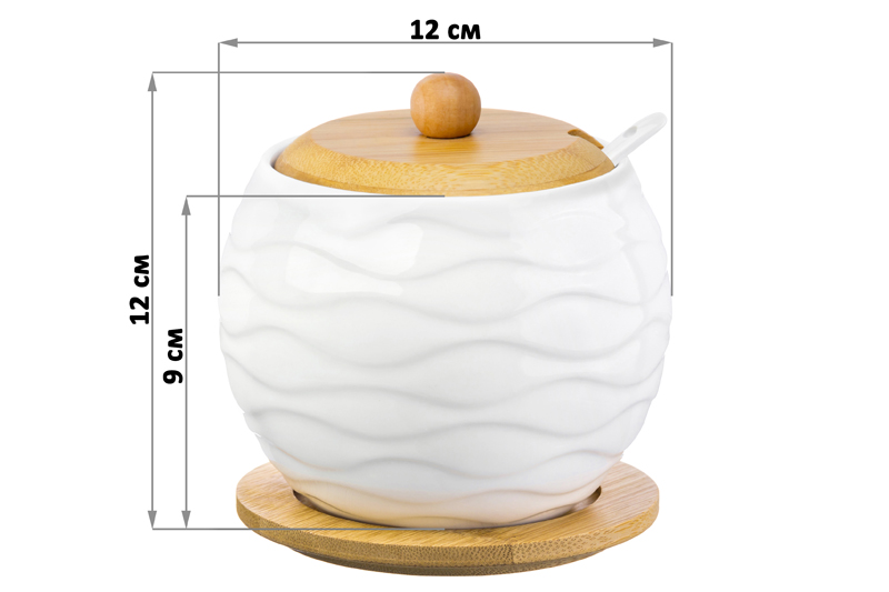 Сахарница 620 мл 12*12*12 см "Айсберг волны" + ложка + дер. крышка на дер. подставке