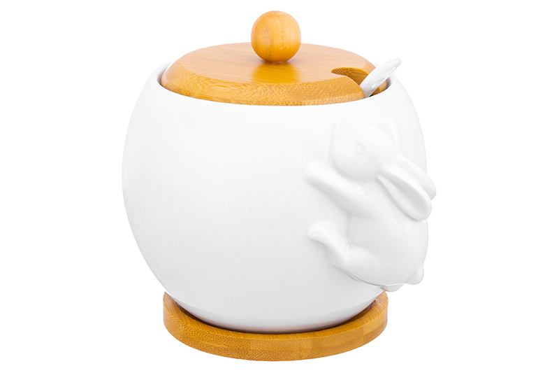 Сахарница 620 мл 12*12*12 см "Кролик" + ложка + дер. крышка на дер. подставке