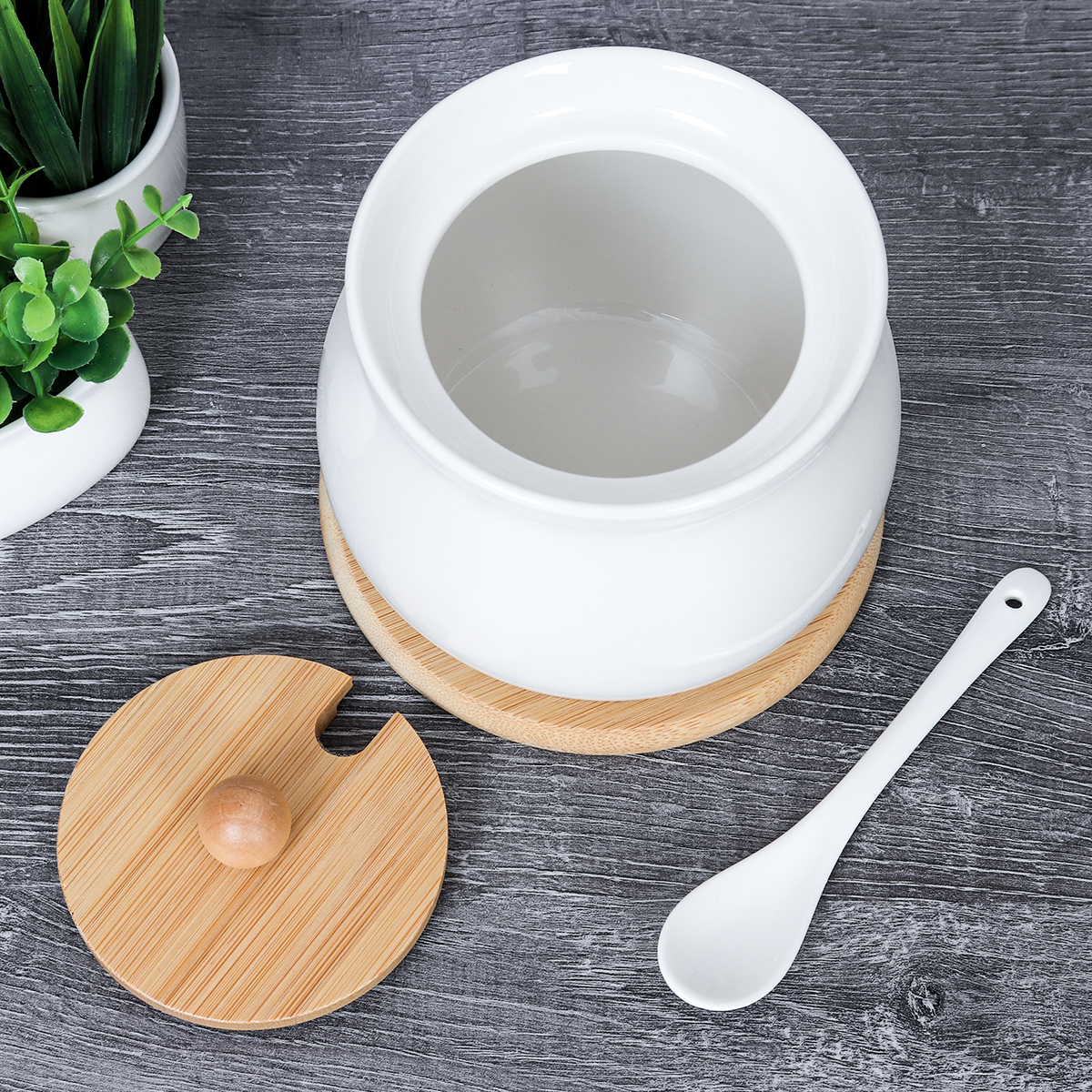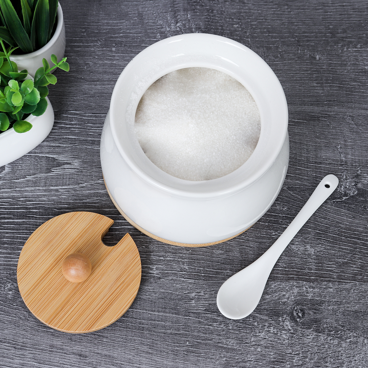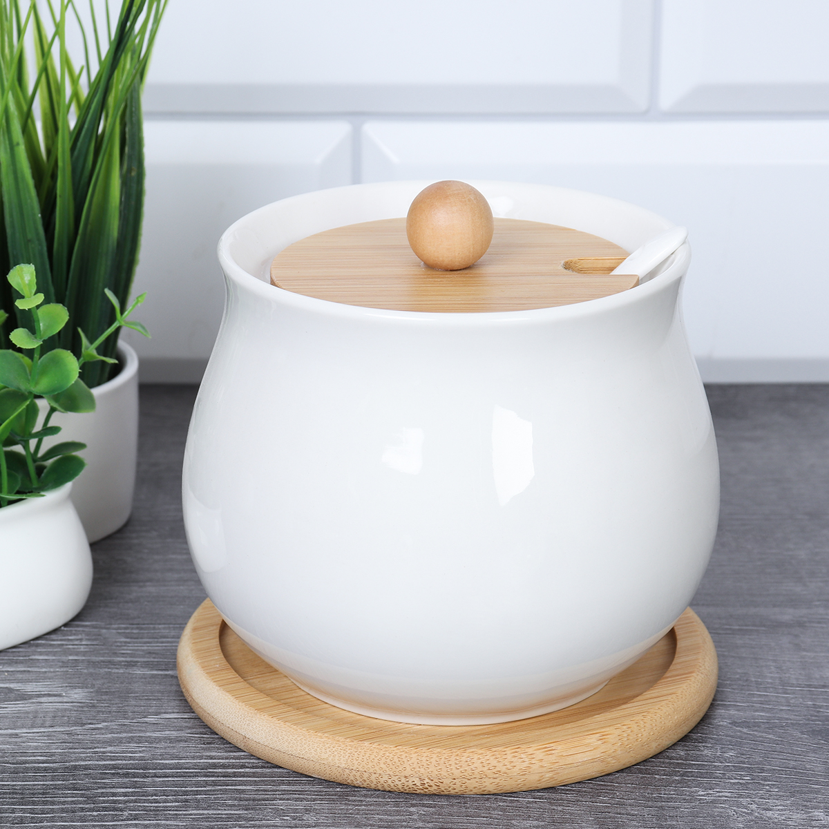 Сахарница 650 мл с ложкой / CF108 /уп 36/ на деревянной подставке