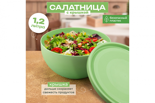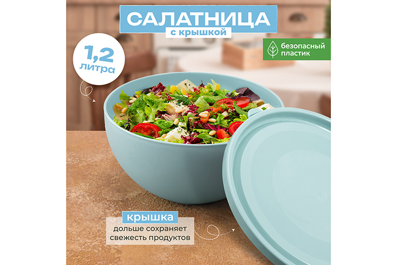 Салатница с крышкой 1,2 л 16,8*16,8*8,7 см серо-голубой (модель 394)