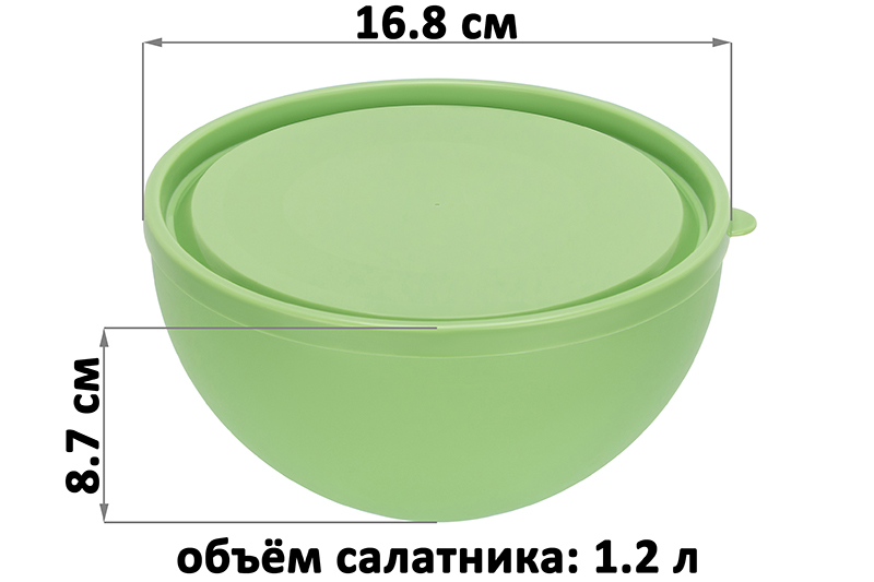 Салатница с крышкой 1,2 л 16,8*16,8*8,7 см светло-зеленый (модель 394)