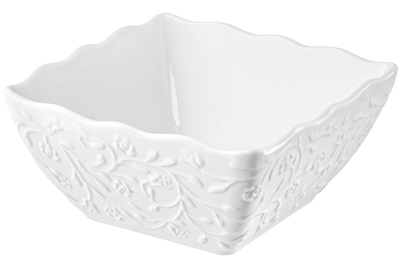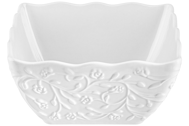 Салатник 1,1 л 16,5*16,5*8 см «Веточки-цветочки" квадрат глубокий, фарфор