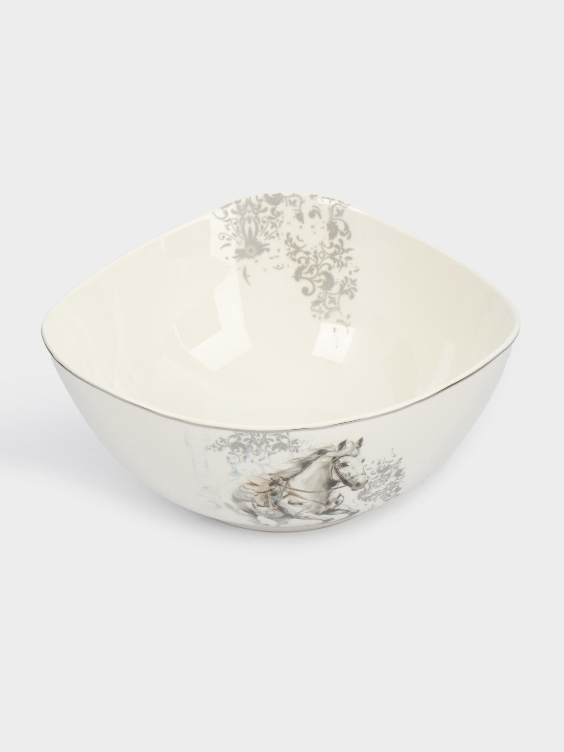 Салатник, 21х11 см, 1,8 л, фарфор N, белый, с серебристым кантом, Конь, White horse