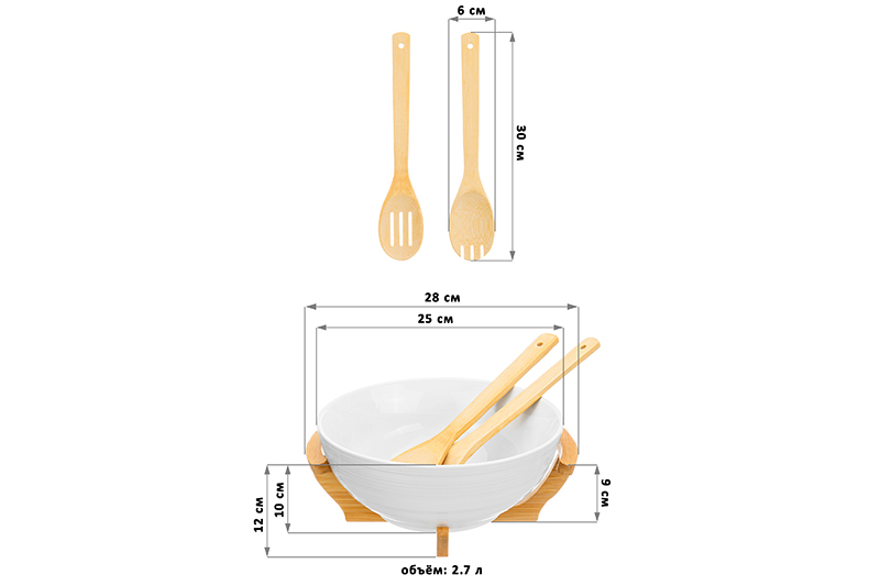 Салатник 28*25*12 см 2,7 л "Шелк" + дер. подставка + 2 дер. ложки