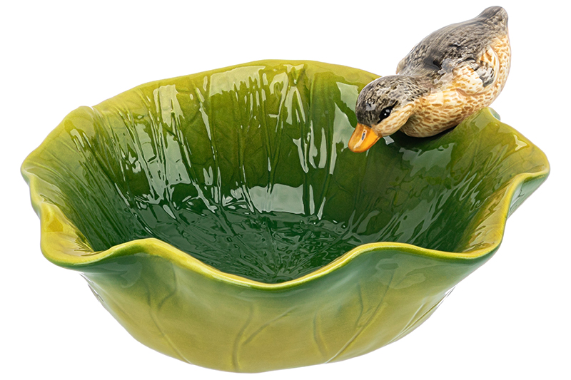 Салатник «Уточка» от Elan Gallery предназначен для эстетичной сервировки вашего стола. Размер изделия – 19х17х7,5 см, объём – 380 мл. Выполнен из керамики в виде зелёного листа, на краю которого сидит маленькая уточка. Большая глубокая миска станет идеальным вариантом для любителей здорового питания. Используйте для подачи салатов, а также свежих овощей и фруктов. Послужит и для сервировки холодных закусок и гарниров. Задействуйте блюдце в качестве конфетницы для организации уютного чаепития. Заполните его конфетами, печеньем, зефиром или безе. Благодаря необычному дизайну сервировочное изделие разнообразит интерьер кухни, столовой или гостиной. Добавьте вашему дому тепла вместе с симпатичной птичкой. Не рекомендуется применять абразивные моющие средства. Не подходит для использования в посудомоечной машине и микроволновой печи. Поставляется в дизайнерской картонной коробке – благодаря ей вам не потребуется дополнительная подарочная упаковка. В коллекции бренда Элан Галерея представлен богатый выбор декоративной посуды и красивых сувениров – каждый обязательно подберёт вариант на свой вкус. Они станут оригинальным подарком для родных, близких и коллег. Преобразите пространство вокруг себя, наполнив его неповторимым очарованием!