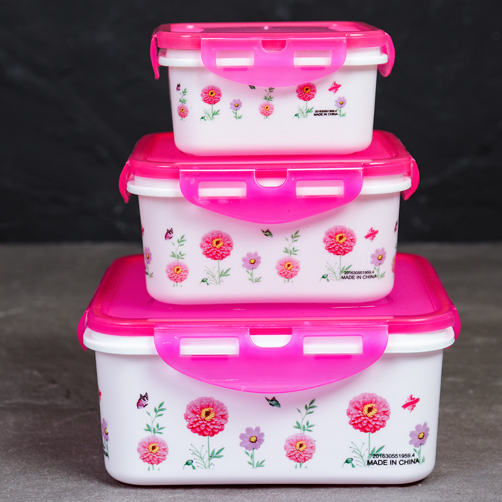 Салатник квадратный 3 штуки с крышками / 131 /уп 96/ 350, 800, 1300 мл
