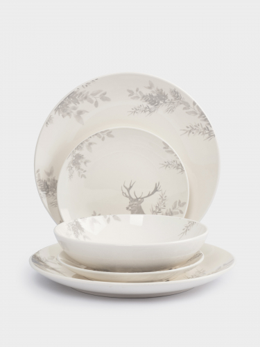 Сервиз обеденный, 6 перс, 18 пр, керамика, Олень и шишки, Maral grey
