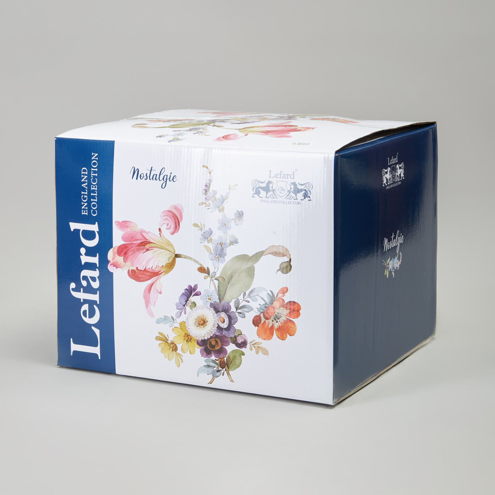 ТМ LEFARD «NOSTALGIE» - это коллекция по мотивам известного декора, появившегося в середине 18 века, в виде цветов и растений, собранных в прекрасные букеты в стиле рококо. Узор, появившийся впервые на изделиях Мейсенской мануфактуры в Германии, до сих пор путешествует по фарфору разных стран. Его можно встретить на немецких сервизах, чешском фарфоре. Дизайнеры LEFARD вдохнули еще одну жизнь в эту знаменитую тему, добавили краски кобальта и золотые элементы. Качественный тонкостенный фарфор, уникальные формы, неизменная классика. Это прекрасный подарок. Посуда прошла сертификацию, безопасна для контакта с пищевыми продуктами. Использовать только мягкие моющие средства. Нельзя мыть в посудомоечной машине, ставить в микроволновую печь.