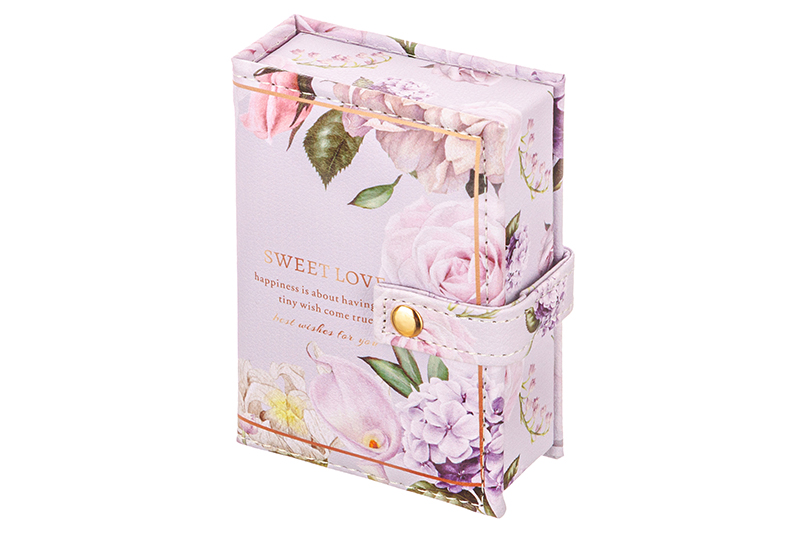 Шкатулка для украшений от Elan Gallery послужит универсальным органайзером для ювелирных изделий и бижутерии. Общий размер изделия – 15х10,5х5 см. Выполнена в форме сиреневой книжки, украшенной изображениями нежных цветов и надписью «Sweet love. Happiness is about having every tiny with come true. Best wishes for you» («Милая любовь. Счастье – это когда сбывается каждое малейшее желание. С наилучшими пожеланиями для вас»). Закрывается на магнитную кнопку. Включает отделение для колец и большой универсальный отсек в нижней части, «крючки» и «кармашек» – в верхней. Эстетичная коробочка с необычным дизайном поможет навести порядок даже в богатой коллекции драгоценностей! Прочные разделители помогут сортировать аксессуары удобным для вас способом: по типу изделия, цвету или материалу. Кармашек и большой нижний отсек идеально подойдут для браслетов, кулонов, колье и цепочек из золота, серебра и других металлов. Большое отделение также предназначено для хранения серёжек-гвоздиков. Верхние крючки также послужат для удобного хранения колец или серёг-колец. Такая шкатулка станет оригинальным подарком как для девочки-подростка, так и для женщины. Подарите её маме, бабушке или подруге, чтобы порадовать их стильным и практичным дополнением хозяйственного инвентаря. Нежный и эстетичный дизайн гармонично впишет изделие в любой интерьер, позволяя хранить коробку даже на открытой полке. Это особенно удобно для тех, кто пользуется украшениями ежедневно. Поставляется в прочной картонной упаковке. В коллекции бренда Элан Галерея вы найдет большой ассортимент товаров для дома, которые помогут вам организовать бережную систему хранения ваших вещей!