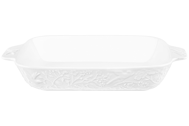 Шубница от Elan Gallery из серии «Райский сад» предназначена для эстетичной сервировки вашего стола. Размер блюда – 32,5х20х5,5 см, объём – 1,7 литра. Выполнена из высококачественного белого фарфора и украшена рельефным узором. Поверхность изделия овивают тонкие лиственные и цветочные веточки, возле которых порхают выразительные птицы. Фарфор не впитывает цвет напитков и легко отмывается, благодаря чему надолго сохранит свою белизну. Вместительная ёмкость подойдёт для селёдки под шубой, холодца и плова. Подходит как для подачи, так и для запекания ваших любимых блюд в духовке при температуре до 230 градусов. Глубокое блюдо прямоугольной формы позволит вам эстетично преподнести угощения из рыбы и мяса. Порадуйте себя большой порцией шашлыка и лапши, эстетично разложите суши и роллы, бутерброды и фруктовую нарезку. Выложите нарезанные яйца, сыр и другие закуски, чтобы за большим столом каждому досталось любимое угощение. Заполните большие ёмкости разнообразной выпечкой и сладостями: вафлями, мармеладом, пряниками, шоколадом и печеньем, чтобы дополнить семейное чаепитие. Создайте композицию из конфет, ягод, кексов и сухофруктов, чтобы удивить гостей своей кулинарной фантазией! Благодаря лаконичному дизайну изделия гармонично дополнят любой интерьер. Не рекомендуется применять абразивные моющие средства. Подойдёт для использования в посудомоечной машине и микроволновой печи. Поставляется в дизайнерской картонной коробке – благодаря ей вам не потребуется дополнительная подарочная упаковка! Фарфоровая сервировочная посуда станет оригинальным подарком для хозяйки, ценящей не только практичность, но и привлекательность. Серия «Райский сад» станет украшением любого кухонного инвентаря и позволит собрать сервиз в едином стиле!