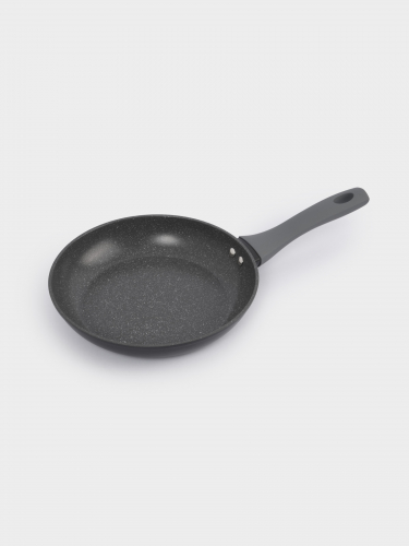 Сковорода. Размер: 24 см. Материал: кованый алюминий с двухслойным антипригарным мраморным покрытием, ручка - бакелит с покрытием Soft touch. Двухслойное антипригарное мраморное покрытие безопасно для здоровья, т.к. не содержит PFOA (перфтороктановая и перфлюорооктановая кислоты); имеет гладкую поверхность, которая позволяет готовить с минимальным количеством масла и выдерживает нагрев до 260ºС; обладает высокой теплопроводностью, износостойкостью и устойчивостью к царапинам. Подходит для использования на всех типах плит, в том числе индукционных. Пустую посуду не подвергать воздействию высоких температур. Рекомендации по уходу: мыть вручную с применением мягких моющих средств. Не использовать для ухода абразивные чистящие средства и жесткие губки. Можно мыть в посудомоечной машине, но это приводит к появлению темного налета на внешней алюминиевой части дна (не влияет на потребительские характеристики самой посуды).