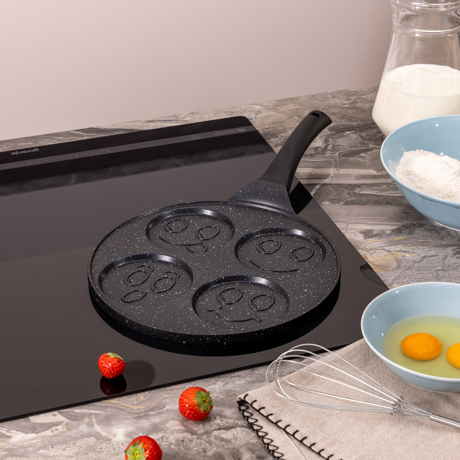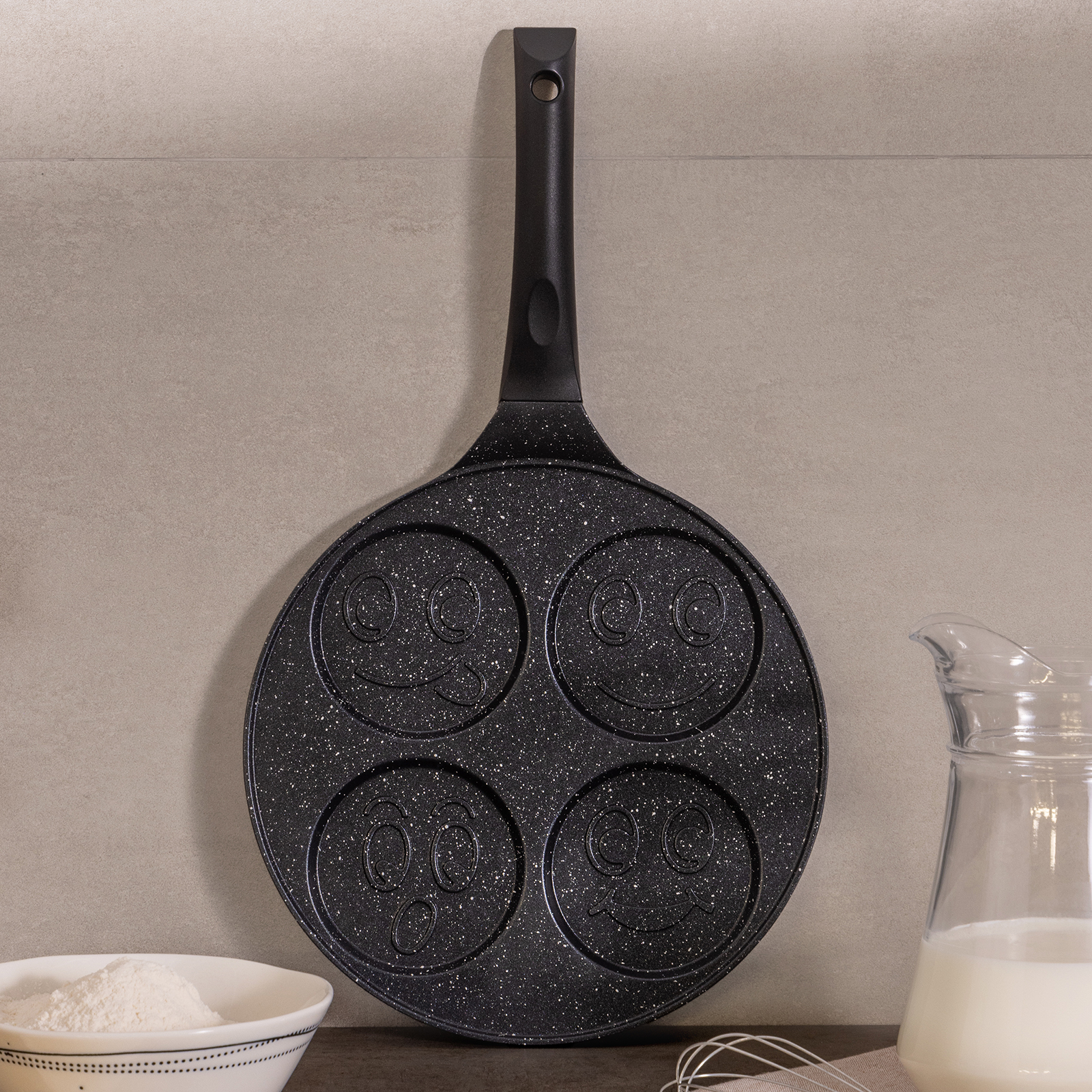 Сковороды AGNESS серии "СМАЙЛ" выполнены из литого алюминия. Такая посуда отличается высокой теплопроводностью и устойчивостью к деформациям. Необычный дизайн сковороды позволит приготовить интересные и веселые оладушки и омлеты.