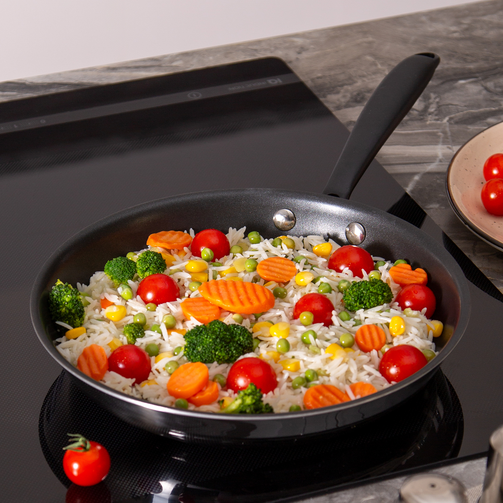 СКОВОРОДА C АНТИПРИГАРНЫМ ПОКРЫТИЕМ "IRON CHEF" изготовлена с помощью технологии 3-PLY , благодаря которой посуда равномерно прогревается и сохраняет максимум пользы в приготовленной пище. Корпус сковороды состоит из трех слоев: внутренний слой из нержавеющей пищевой стали AISI 304 (18/10) толщиной 0,4мм - она хорошо переносит перепады температур, устойчива к коррозии и ржавчине; средний слой из алюминия толщиной 1,3мм - благодаря ему посуда быстро и равномерно прогревается; наружный слой из нержавеющего 430 сплава толщиной 0,6мм -такую посуду можно использовать на любой плите, в том числе и индукционной.Сверхпрочная двухслойная структура антипригарного покрытия Daikin обеспечивает превосходные эксплуатационные качества и долгий срок службы посуды. Внешняя стенка имеет низкую теплопроводность и отлично сохраняет температуру на протяжении длительного времени, давая возможность блюду настояться и полностью раскрыться всем вкусовым составляющим.