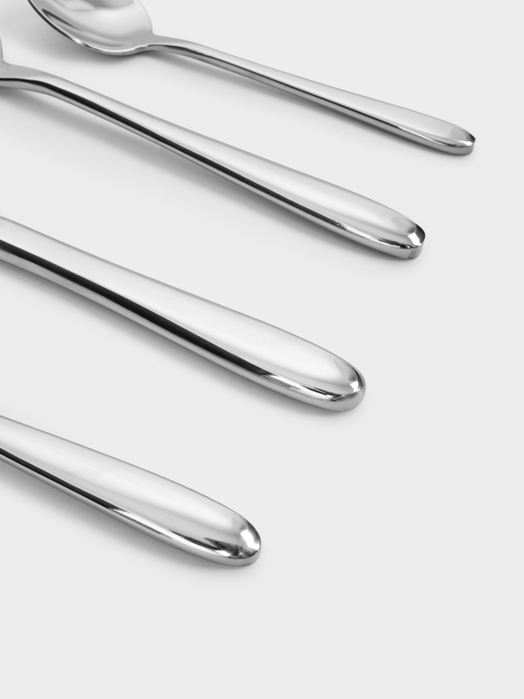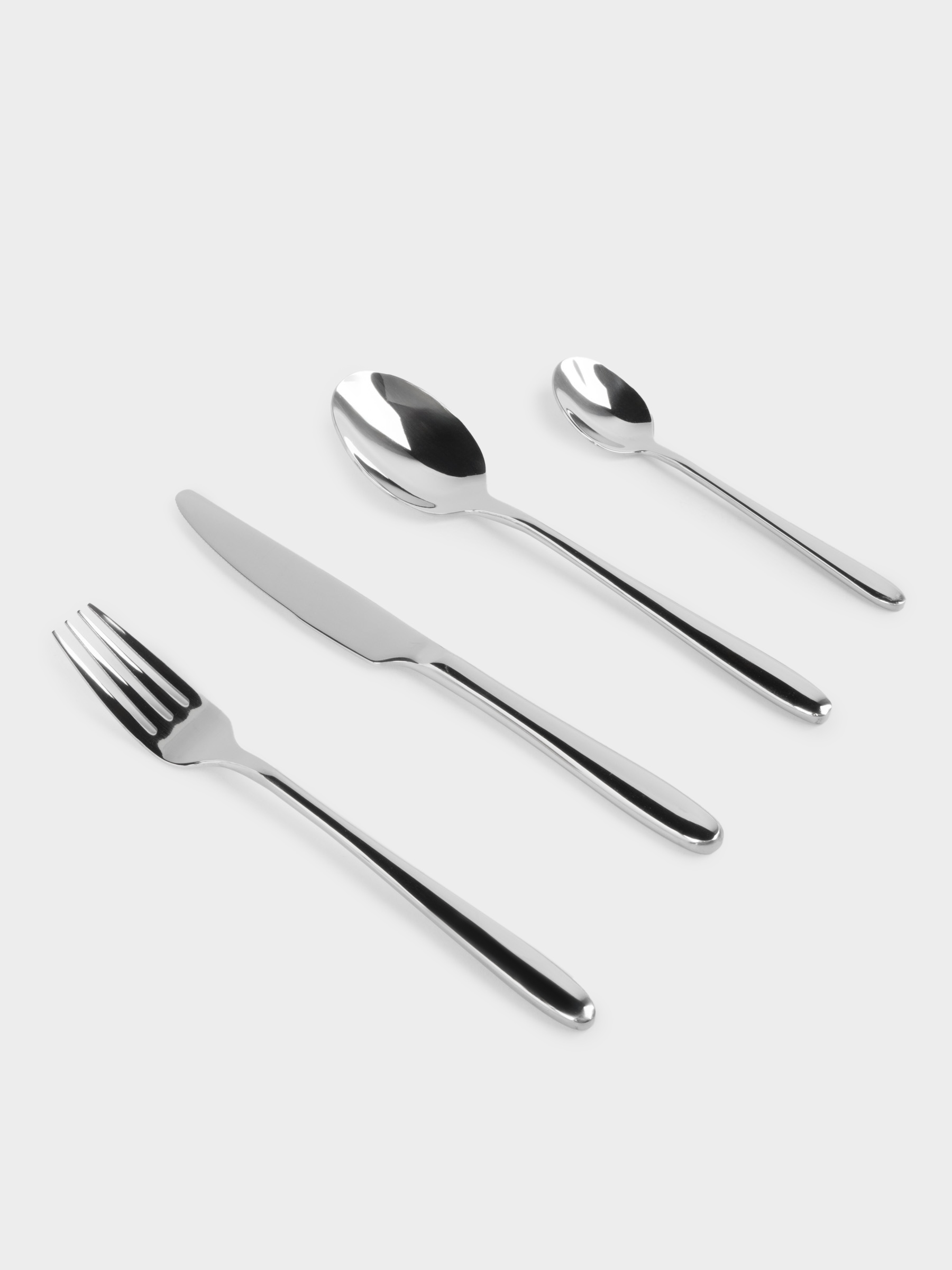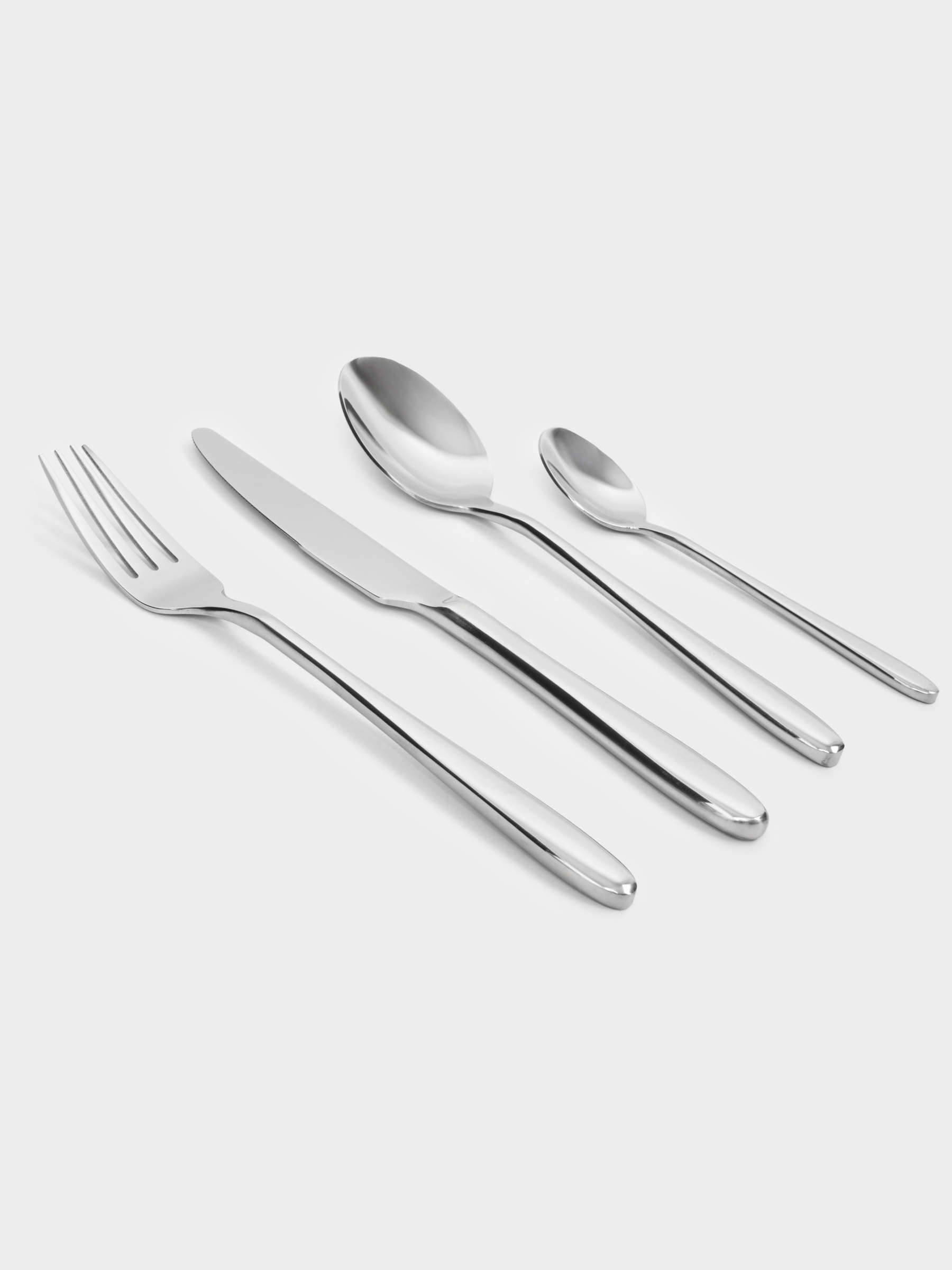 Столовые приборы, 6 персон, 24 предмета. Материал: нержавеющая сталь 18/0. Комплектация: нож столовый - 6 шт, вилка столовая - 6 шт, ложка столовая - 6 шт, ложка чайная - 6 шт. Рекомендуется мыть вручную с применением мягких моющих средств во избежание появления царапин на поверхности приборов. Не использовать для ухода абразивные чистящие средства и жесткие губки. Можно мыть в посудомоечной машине.