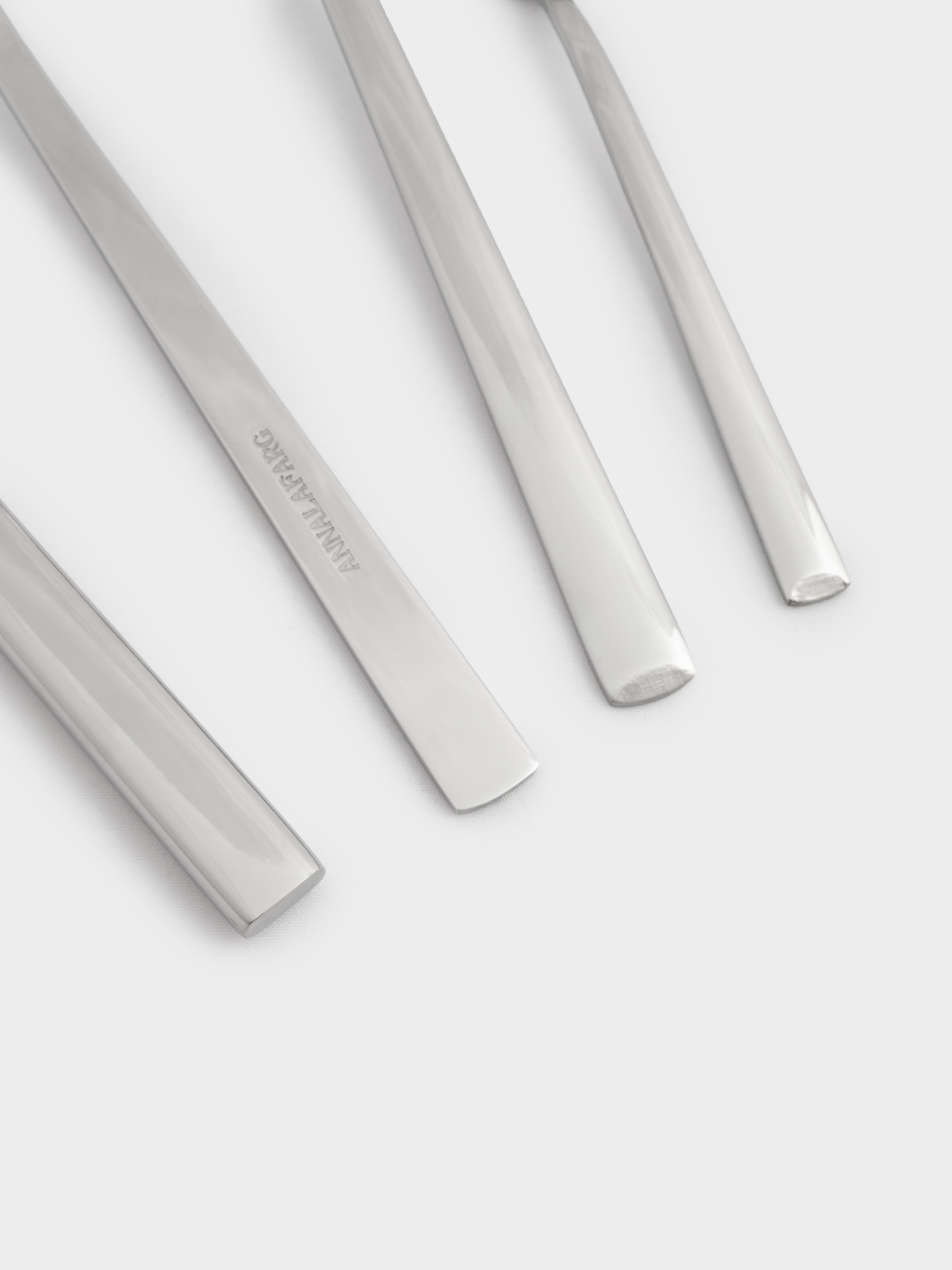 Столовые приборы, 6 персон, 24 предмета. Материал: нержавеющая сталь 18/0. Комплектация: нож столовый - 6 шт; вилка столовая - 6 шт; ложка столовая - 6 шт; ложка чайная - 6 шт. Рекомендуется мыть вручную с применением мягких моющих средств во избежание появления царапин на поверхности приборов. Не использовать для ухода абразивные чистящие средства и жесткие губки. Можно мыть в посудомоечной машине.
