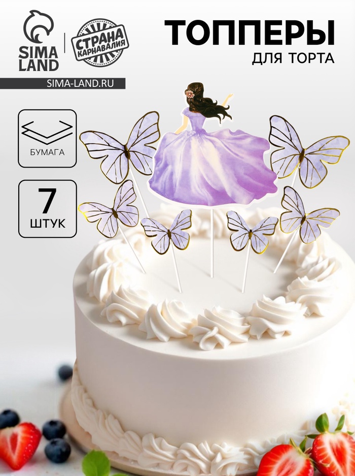 Набор топперов «Девушка с бабочками» — идеальный выбор для любого праздника! В этот набор входят 7 топперов, которые идеально подходят для украшения тортов, десертов и букетов цветов. Изделия изготовлены из бумаги и пластика. Их можно использовать в качестве декора для самых разнообразных праздников.