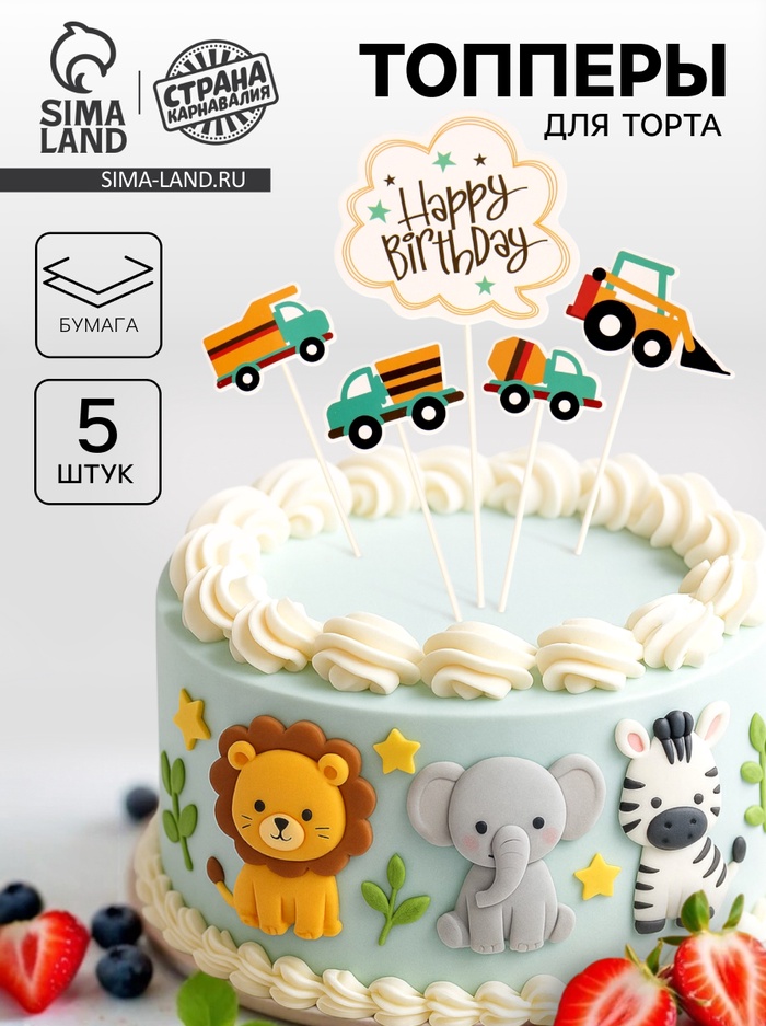* В комплекте 5 топперов с тематикой транспорта, выполненных из качественной бумаги.