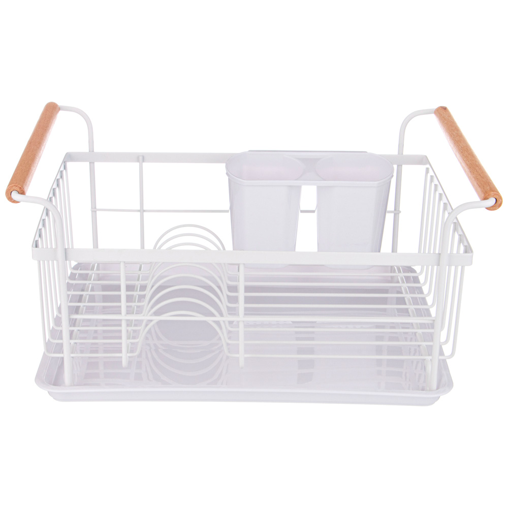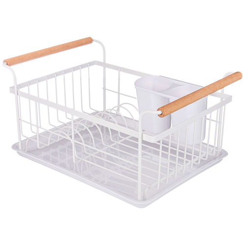 Универсальная сушилка для посуды 36х26х16,5 см – это стильный компактный аксессуар, который позволить сэкономить и упорядочить пространство на кухне. Сушилку можно поставить на полку шкафчика или использовать прямо на открытой кухонной поверхности. Имеет продуманную конструкцию, поэтому на ней можно сушить тарелки в вертикальном положении, чашки и миски. Кроме того, предусмотрены стаканы для сушки столовых приборов. Поддон для сбора воды легко вынимается и ставится обратно. Крепкое изделие из металла не боится влаги и не подвержено коррозии. Оснащено ручками для удобства перемещения.