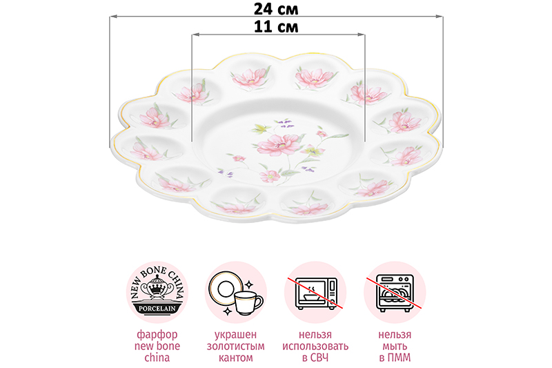 Тарелка д/фарш. яиц 24*24*2,5 см "ХВ Диана" фарфор, NEW BONE CHINA