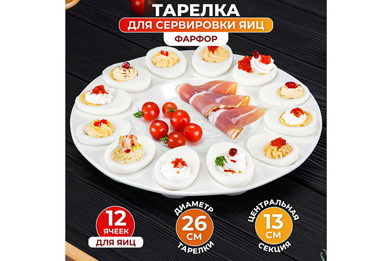 Тарелка для фаршированных яиц Elan Gallery "Птички на ветке" предназначена для эстетичной сервировки вашего стола. Размер изделия – 26х26х2 см, диаметр центральной секции – 13 см. Выполнена из белого фарфора, украшена рельефными узорами. Используйте сервировочное блюдо для необычной подачи фаршированных яиц и других угощений. Наполните ячейки крашенными яйцами, мандаринами или любыми закусками. В центральной секции будет отлично смотреться кулич. Создайте композицию по своему вкусу, чтобы преобразить праздничный стол! Не рекомендуется применять абразивные моющие средства. Можно использовать в посудомоечной машине и микроволновой печи. Поставляется в стильной картонной коробке – благодаря ей вам не потребуется дополнительная подарочная упаковка. В коллекции бренда Элан Галерея вы найдёте большой выбор товаров для дома и декоративной посуды – каждый обязательно подберёт вариант на свой вкус. Изделия станут чудесным подарком для родных, близких и коллег. Наполните пространство вокруг себя уютом и эстетикой!