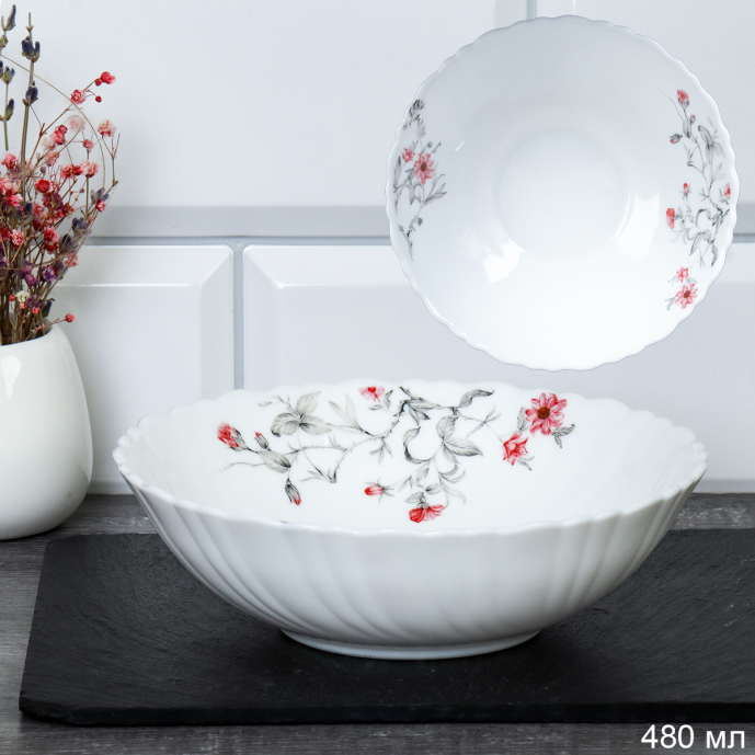 Тарелка глубокая суповая 480 мл 155 мм / TW-60 (7318) /уп 6/72/ Серый кустик 721987