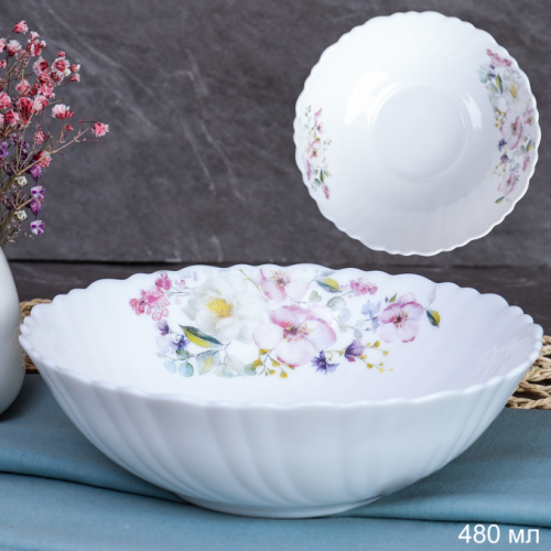 Тарелка глубокая суповая 480 мл 155 мм / TW-60XN (7065) /уп 72/ серия Розовая композиция