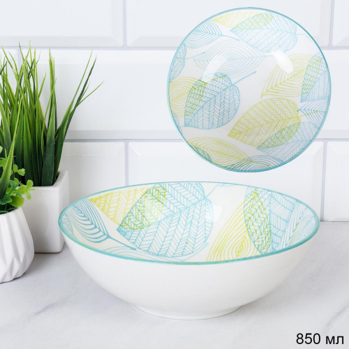 Тарелка глубокая суповая 850 мл Листья / CRT-14 /уп 26/ 18*6 см