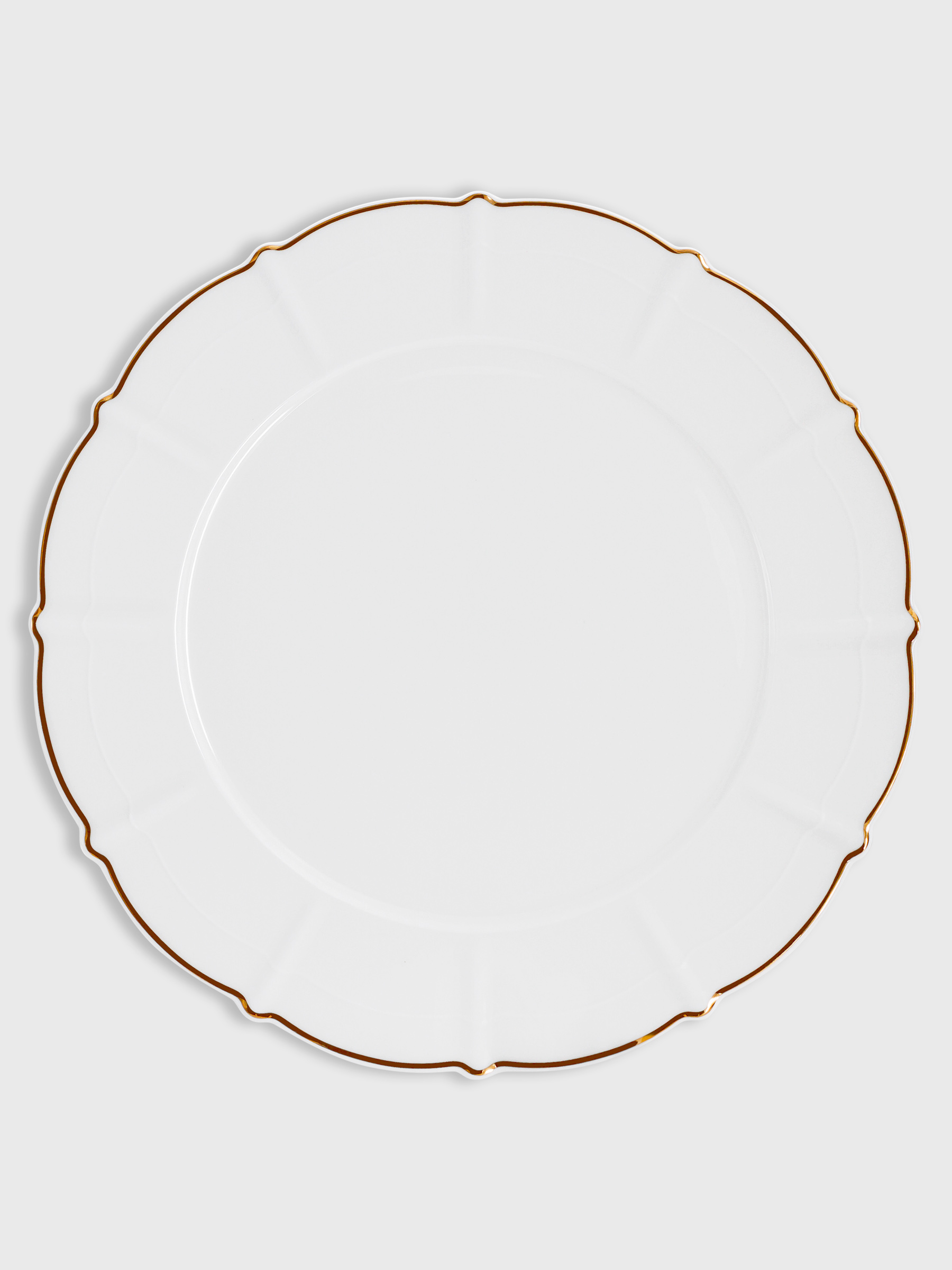 Тарелка обеденная, 26,5 см, фарфор F, белая, с золотистым кантом, Lotus gold. Материал: фарфор Fine Bone China. Мыть тёплой водой с применением жидких моющих средств. Не использовать в СВЧ и в посудомоечной машине.