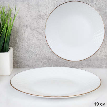 Тарелка плоская 190 мм десертная ЗОЛОТО Плетенка белая BZP75 White Gold (уп72)