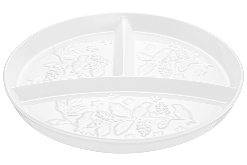Тарелка секционная д/правильного питания 22*22*2,5 см "Птички на ветке" цельная глубокая 3 секции