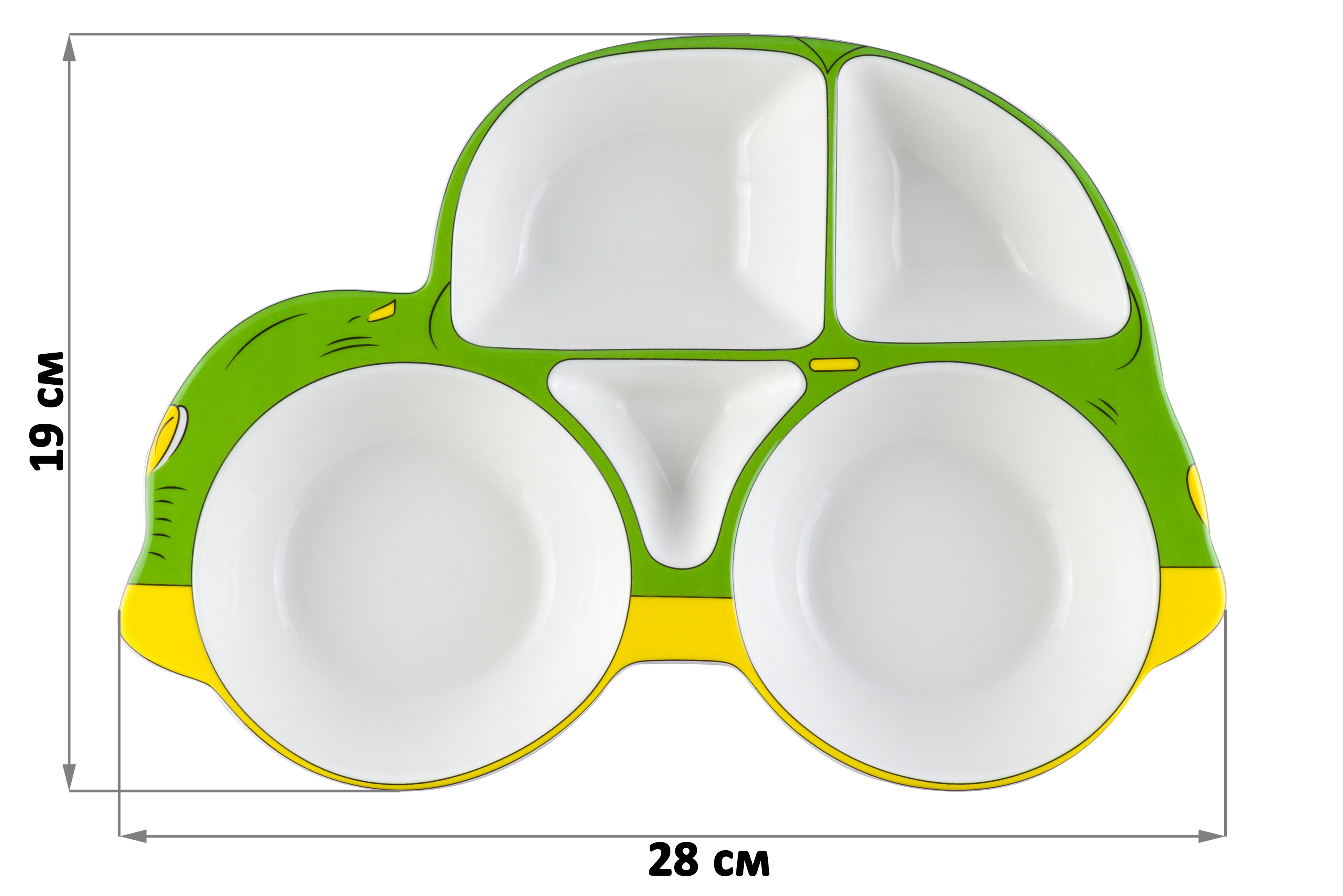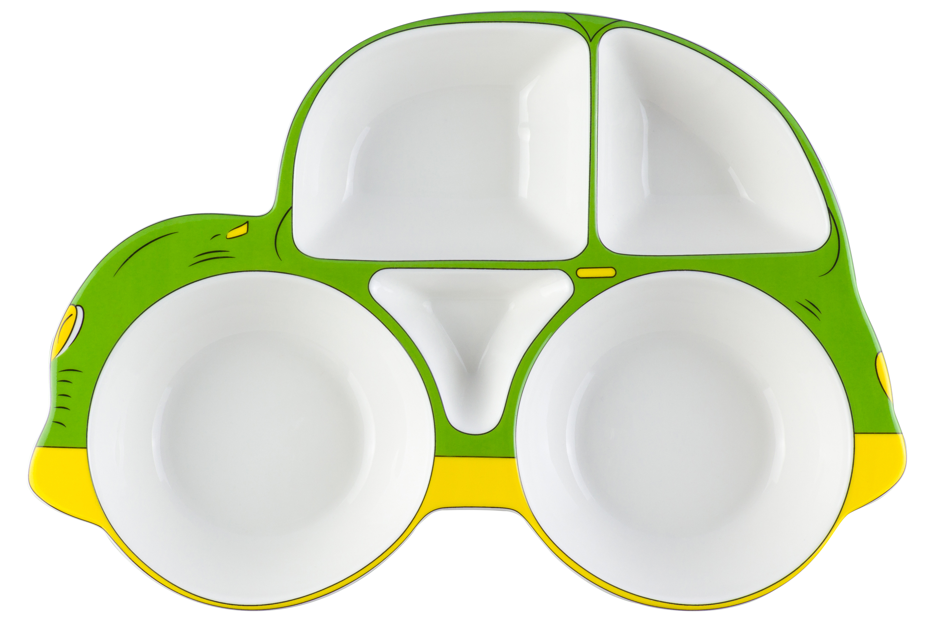 Тарелка сервировочная 28*19*3,6 см "Машина" 5 секций зелено-желтая, фарфор, NEW BONE CHINA