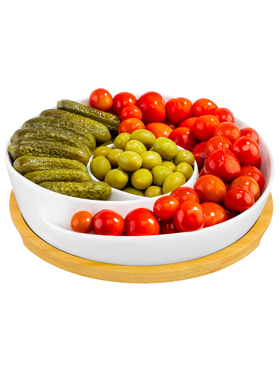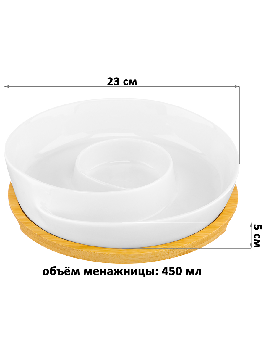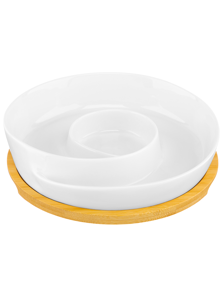 Тарелка сервировочная - менажница 23*23*5 см 450 мл "Улитка" глубокая на деревян. подставке-подносе