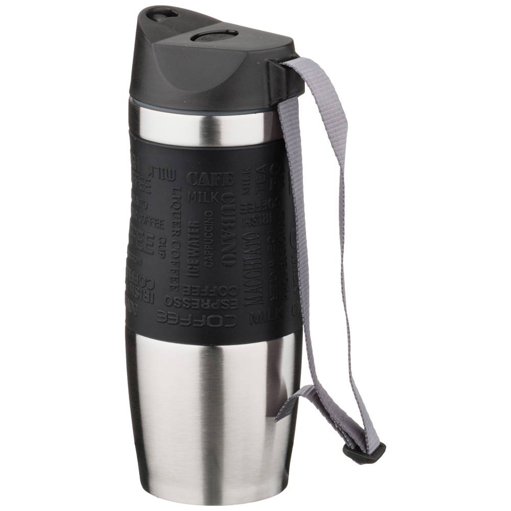 ТЕРМОКРУЖКА AGNESS 360 МЛ С КНОПКОЙ-СТОППЕРОМ, ЦВЕТ: ЧЕРНЫЙ(КОР=30ШТ.)