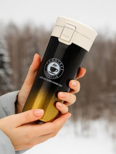 Эта термокружка сочетает в себе стиль и функциональность, что делает её отличным подарком для себя или близких.