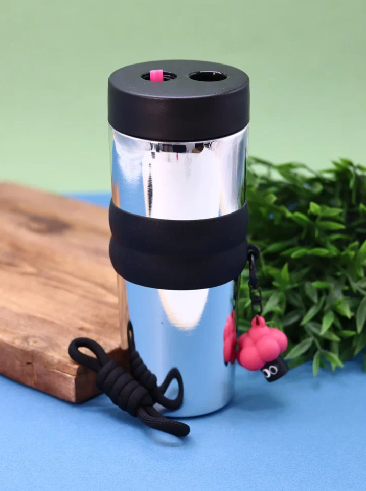 Термос изготовлен из высококачественной нержавеющей стали. Объём: 710 мл. Высота: 21,3 см. Диаметр: 8,5 см. Вес: 485 гр. Вакуум в межстеночном пространстве колбы и корпуса обеспечивает теплоизолирующие свойства, которые позволяют сохранять температуру 5-6 часов. Отлично подойдёт для хранения горячих и холодных напитков. В комплекте трубочка со съемной резиновой насадкой-поильником, закрывается завинчивающимся колпачком. На время использования термоса колпачок можно разместить в специальном слоте, расположенном на крышке термоса. Также в комплекте съемное резиновое кольцо, к которому крепится шнурок для переноски с оригинальным брелоком. Термос упакован в индивидуальный полиэтиленовый пакет и картонную коробку. Размер упаковки: 25,8 х 9,8 х 9,8 см.