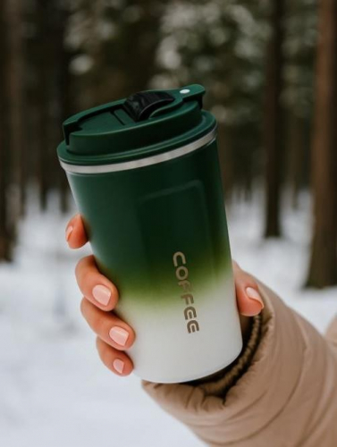Кружка изготовлена из высококачественной нержавеющей стали и имеет стильный градиентный дизайн, что делает её ярким аксессуаром для ежедневного использования.
