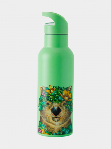 Термос-бутылка, 500 мл, с трубочкой, сталь/пластик, зеленый, Вомбат, Marini Ferlazzo. Материал: нерж. сталь, пластик. Не использовать для газированных напитков и молочных продуктов. Рекомендуется мыть вручную жидким моющим средством, без применения абразивных материалов и жёстких губок. Не использовать в СВЧ и посудомоечной машине.
