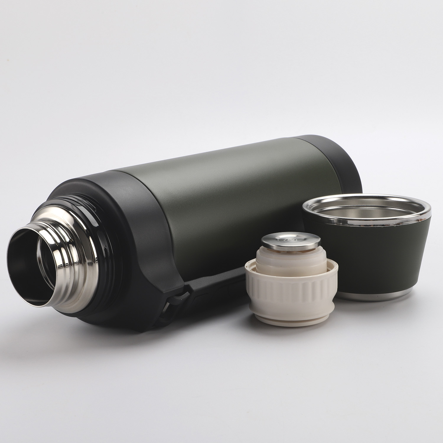 Колба термоса изготовлена из высококачественной нержавеющей стали марки 18/10 (AISI 304). Покрытие - зеленое, матовое.