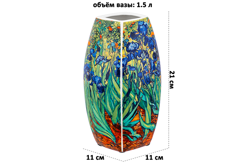 Настольная ваза Elan Gallery "Ирисы" размером 11х11х21 см и объёмом 1,5 литра прямоугольной формы выполнена из фарфора нового поколения new bone china. Благодаря современным технологиям этот вид не уступает традиционному костяному фарфору в прочности, но гораздо экологичнее в производстве. В коллекции бренда Elan Gallery можно найти много красивой посуды и предметов декора с изображениями по мотивам шедевров мировой живописи! Высокая вазочка украшена репродукцией картины известного художника Ван Гога. Яркий и узнаваемый сюжет на фарфоровом изделии удачно впишется в любой стиль интерьера, добавляя красоты и романтики. Интерьерная ваза подойдёт для размещения букетов, искусственных цветов или сухоцветов. Она послужит элементом декора вашего дома и поможет украсить его любыми растениями. Как красиво будут смотреться букеты из живых цветов и веточек на кухне и в любой комнате! Поставьте на видное место розы, тюльпаны или вербу для оформления интерьера в квартире. Интерьерная ваза украсит комнату даже без наполнения и подойдёт для создания декоративных композиций на журнальном столике или полке. Эргономичная форма позволит поставить в неё цветы с длинными стеблями. Не рекомендуется применять абразивные моющие средства. Поставляется в прочной красочной коробке. Станет шикарным подарком вашим близким на любой праздник. Благодаря стильной коробочке вам не понадобится дополнительная подарочная упаковка. Сделайте сюрприз ценителям искусства! Красивая фарфоровая ваза с рисунком станет украшением вашего дома и подчеркнёт красоту любого цветка. Ознакомьтесь с другими товарами для дома от Elan Gallery, здесь вы найдёте всё для создания домашнего уюта!