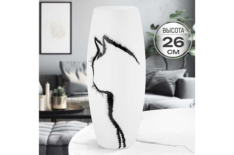 Ваза "Черный кот" 11х11х26 см выполнена из прочного стекла с ручной росписью. Кот - символ года 2023! Высокая ваза с котиком подойдет для размещения букетов, искусственных цветов, сухоцветов или декоративных веток. Эргономичная форма вазы подходит для цветов с длинными стеблями и изящно подчеркивает их красоту. Интерьерная ваза украсит комнату даже при использовании без наполнения. Разместите ее на столе или полке, чтобы задать в комнате стильный акцент! Поставляется в прочной картонной упаковке. Настольная ваза с изображением кошки сможет стать настоящим украшением дома или приятным подарком на Новый год!
