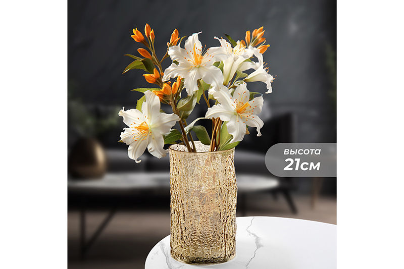 Ваза ручной выдувки от Elan Gallery объёмом 2 литра выполнена из стекла. Размер 14х14х21 см. Полупрозрачная ваза светло-коричневого оттенка украшена рельефным узором, имитирующим поверхность дерева. Подойдёт для живых и искусственных цветов, веток и сухоцветов. Стильная вазочка с ребристой поверхностью послужит элементом декора для вашего дома. В ней красиво будут смотреться букеты из любых цветов или веточек: роз, тюльпанов, вербы. Интерьерная ваза с рельефом украсит комнату даже без наполнения. Подойдёт для оформления декоративных композиций. Эргономичная форма позволит поставить в неё цветы с длинными стеблями. Разместите декоративную вазу на столе или полке, чтобы украсить спальню роскошным букетом пионов или другими растениями! На Новый год и Рождество поставьте в стеклянную вазочку еловые ветки с ёлочными игрушками для создания праздничной атмосферы. Не рекомендуется применять абразивные моющие средства. Поставляется в картонной коробке. Сделайте сюрприз своим близким или коллегам на любой праздник! Предметы декора – хороший подарок как мужчине, так и женщине. Красивый дизайн и функциональность понравятся каждому! Вазочка станет украшением домашнего интерьера и подчеркнёт красоту любого цветка. В коллекции бренда Elan Gallery можно найти много стильных товаров для дома. Здесь есть всё для создания уюта в квартире и на даче!