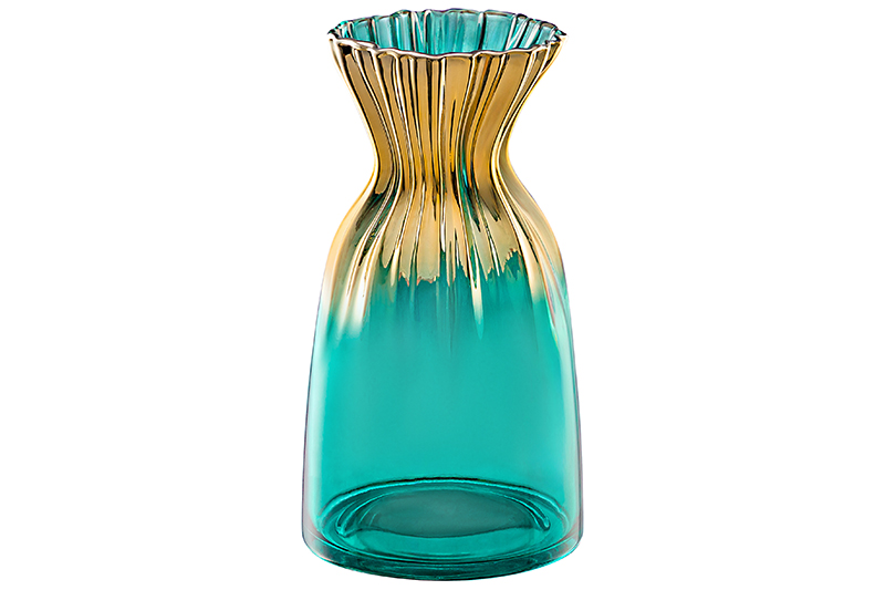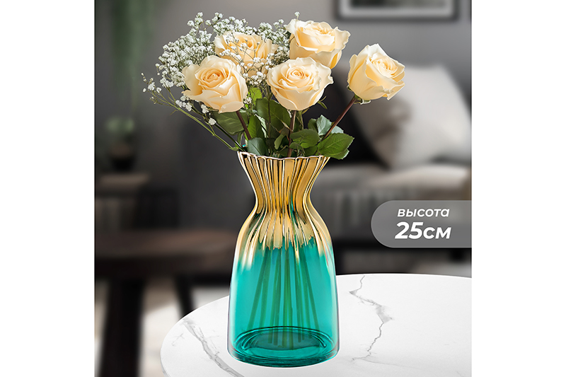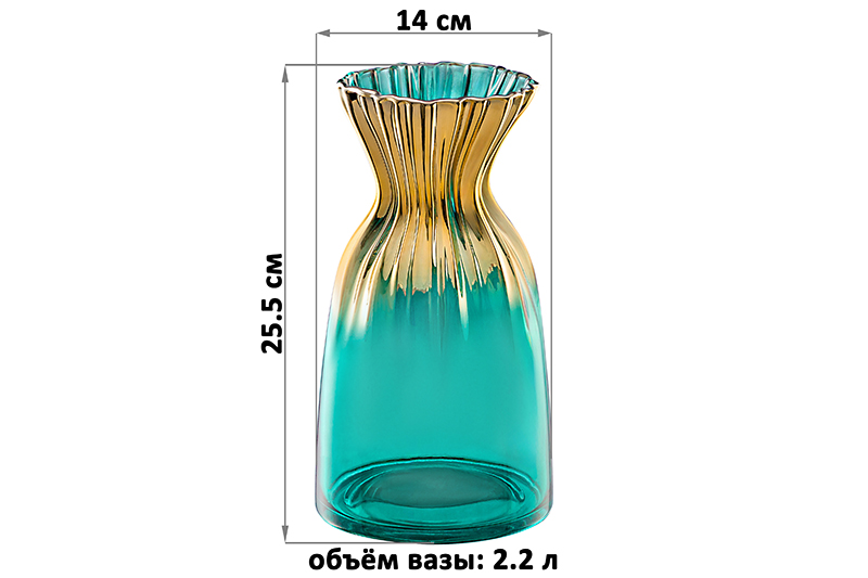 Ваза 14*14*25,5 см, золотая-зеленая, стекло