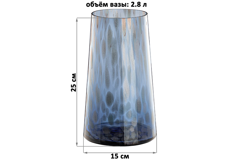 Ваза ручной выдувки от Elan Gallery объёмом 2,8 литра выполнена из стекла. Размер 15х15х25 см, внутренний диаметр горлышка 10,5 см. Имеет цилиндрическую форму. Высокая прозрачная ваза тёмно-синего цвета украшена пятнышками с мелкими блёстками. Ярко выраженные на дне, они ложатся на стенки аккуратными, заметными на свету бликами. Благодаря блестящим элементам стеночки сияют и переливаются. Такой дизайн оценят как любители оригинальных вещей, так и трендового леопардового принта. Ваза подойдёт для живых и искусственных цветов, веток и сухоцветов. Стильная вазочка в форме цилиндра послужит элементом декора для вашего дома. В ней красиво будут смотреться букеты из любых цветов или веточек: роз, тюльпанов, вербы. Интерьерная ваза украсит комнату даже без наполнения! Подойдёт для оформления декоративных композиций. Эргономичная форма позволит поставить в неё цветы с длинными стеблями. Разместите декоративную вазу на столе или полке, чтобы украсить спальню роскошным букетом пионов или другими растениями! На Новый год и Рождество поставьте в стеклянную вазочку еловые ветки с ёлочными игрушками для создания праздничной атмосферы. Не рекомендуется применять абразивные моющие средства. Поставляется в картонной коробке. Сделайте сюрприз своим близким или коллегам на любой праздник! Предметы декора – хороший подарок как мужчине, так и женщине. Красивый дизайн и функциональность понравятся каждому! Вазочка станет украшением домашнего интерьера и подчеркнёт красоту любого цветка. В коллекции бренда Elan Gallery можно найти много стильных товаров для дома. Здесь есть всё для создания уюта в квартире и на даче!