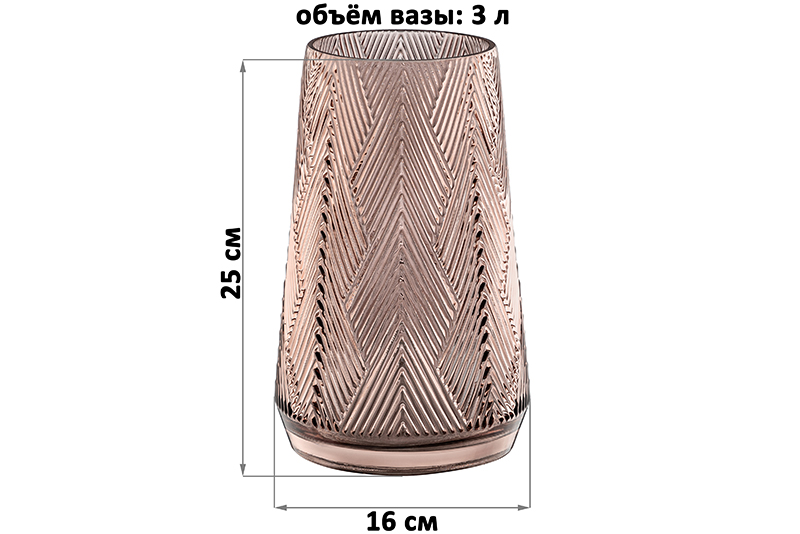 Ваза ручной выдувки от Elan Gallery объёмом 3 литра выполнена из стекла. Размер 16х16х25 см, внутренний диаметр горлышка 10,5 см. Высокая ваза бордового цвета украшена необычным рельефным узором из полосок, образующих ромбики. Подойдёт для живых и искусственных цветов, веток и сухоцветов. Стильная вазочка с ребристой поверхностью послужит элементом декора для вашего дома. В ней красиво будут смотреться букеты из любых цветов или веточек: роз, тюльпанов, вербы. Интерьерная ваза с рельефом украсит комнату даже без наполнения. Подойдёт для оформления декоративных композиций. Эргономичная форма позволит поставить в неё цветы с длинными стеблями. Разместите декоративную вазу на столе или полке, чтобы украсить спальню роскошным букетом пионов или другими растениями! На Новый год и Рождество поставьте в стеклянную вазочку еловые ветки с ёлочными игрушками для создания праздничной атмосферы. Не рекомендуется применять абразивные моющие средства. Поставляется в картонной коробке. Сделайте сюрприз своим близким или коллегам на любой праздник! Предметы декора – хороший подарок как мужчине, так и женщине. Красивый дизайн и функциональность понравятся каждому! Рифлёная вазочка станет украшением домашнего интерьера и подчеркнёт красоту любого цветка. В коллекции бренда Elan Gallery можно найти много стильных товаров для дома. Здесь есть всё для создания уюта в квартире и на даче!
