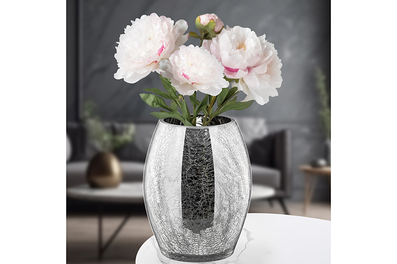 Ваза "Серебряный кракелюр" от Elan Gallery объёмом 4,7 литра выполнена из стекла. Размер 19х19х26 см. Ваза серебристого оттенка имеет оригинальный узор на поверхности с эффектом состаривания, который известен как кракелюр. Благодаря сияющей поверхности и изящной округлой форме изделие из плотного стекла добавит роскоши домашнему интерьеру. Подойдёт для живых и искусственных цветов, веток и сухоцветов. Стильная вазочка с гладкой поверхностью послужит элементом декора для вашего дома. В ней красиво будут смотреться букеты из любых цветов или веточек: роз, тюльпанов, вербы. Интерьерная ваза имеет стильный дизайн, поэтому украсит комнату даже без наполнения. Подойдёт для оформления декоративных композиций. Эргономичная форма позволит поставить в неё цветы с длинными стеблями. Разместите декоративную вазу на столе или полке, чтобы украсить спальню роскошным букетом пионов или другими растениями! Не рекомендуется применять абразивные моющие средства. Поставляется в картонной коробке. Сделайте сюрприз своим близким или коллегам на любой праздник! Предметы декора – хороший подарок как мужчине, так и женщине. Красивый дизайн и функциональность понравятся каждому! Вазочка станет украшением домашнего интерьера и подчеркнёт красоту любого цветка. В коллекции бренда Elan Gallery можно найти много стильных товаров для дома. Здесь есть всё для создания уюта в квартире и на даче!