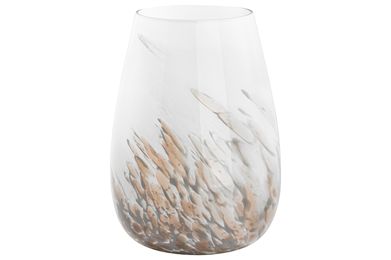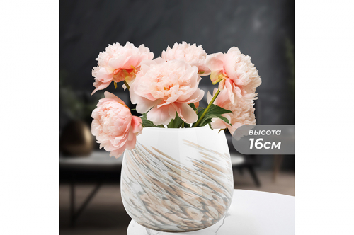 Ваза ручной выдувки от Elan Gallery объёмом 5 литров выполнена из стекла. Размер 19х19х26 см, внутренний диаметр горлышка 12 см. Широкая ваза молочно-белого цвета украшена абстрактным рисунком в виде пятнышек с мелкими блёстками. Имеет гладкую поверхность. Благодаря блестящим элементам изображение сияет и переливается на свету. Подойдёт для живых и искусственных цветов, веток и сухоцветов. Стильная вазочка послужит элементом декора для вашего дома. В ней красиво будут смотреться букеты из любых цветов или веточек: роз, тюльпанов, вербы. Большая интерьерная ваза имеет стильный дизайн, поэтому украсит комнату даже без наполнения. Подойдёт для оформления декоративных композиций. Эргономичная форма позволит поставить в неё цветы с длинными стеблями. Разместите декоративную вазу на столе или полке, чтобы украсить спальню роскошным букетом пионов или другими растениями! На Новый год и Рождество поставьте в стеклянную вазочку еловые ветки с ёлочными игрушками для создания праздничной атмосферы. Не рекомендуется применять абразивные моющие средства. Поставляется в картонной коробке. Сделайте сюрприз своим близким или коллегам на любой праздник! Предметы декора – хороший подарок как мужчине, так и женщине. Красивый дизайн и функциональность понравятся каждому! Вазочка станет украшением домашнего интерьера и подчеркнёт красоту любого цветка. В коллекции бренда Elan Gallery можно найти много стильных товаров для дома. Здесь есть всё для создания уюта в квартире и на даче!