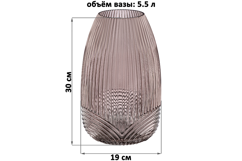 Ваза ручной выдувки от Elan Gallery объёмом 5,5 литра выполнена из стекла. Размер 19х19х30 см, внутренний диаметр горлышка 9,5 см. Прозрачная ваза украшена рельефным узором в виде полосок. Имеет оригинальный оттенок в виде бордово-коричневых переливов. Стильная вазочка с ребристой поверхностью послужит элементом декора для вашего дома! Основание вазы подчёркнуто рельефными дугами. Подойдёт для живых и искусственных цветов, веток и сухоцветов. В ней красиво будут смотреться букеты из любых цветов или веточек: роз, тюльпанов, вербы. Интерьерная ваза с рельефом украсит комнату даже без наполнения. Подойдёт для оформления декоративных композиций. Эргономичная форма позволит поставить в неё цветы с длинными стеблями. Разместите декоративную вазу на столе или полке, чтобы украсить спальню роскошным букетом пионов или другими растениями! На Новый год и Рождество поставьте в стеклянную вазочку еловые ветки с ёлочными игрушками для создания праздничной атмосферы. Не рекомендуется применять абразивные моющие средства. Поставляется в картонной коробке. Сделайте сюрприз своим близким или коллегам на любой праздник! Предметы декора – хороший подарок как мужчине, так и женщине. Красивый дизайн и функциональность понравятся каждому! Рифлёная вазочка станет украшением домашнего интерьера и подчеркнёт красоту любого цветка. В коллекции бренда Elan Gallery можно найти много стильных товаров для дома. Здесь есть всё для создания уюта в квартире и на даче!