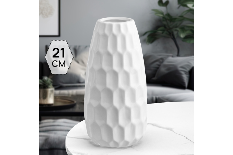 Ваза ручной выдувки «Соты» от Elan Gallery послужит эстетичным дополнением вашего интерьера. Размер ёмкости – 10х10х21 см, объём – 1 литр. Выполнена из керамики, матовая поверхность цвета пломбир украшена рельефными узорами, имитирующими пчелиные соты. Элегантная форма обеспечивает устойчивость и отлично подходит для размещения букетов с цветами на длинных стеблях, а также больших декоративных ветвей. Изделие станет прекрасным элементом декора вашей гостиной, спальни или прихожей, наполнив дом атмосферой гармонии и уюта. Подойдёт как для живых, так и для искусственных веток и цветков, а также для сухоцветов. Поставьте в неё букет из свежих тюльпанов, пионов или роз, расположите веточки вербы, чтобы привнести изысканности в квартиру, студию или загородный дом. Высокая и изящная, она добавит утончённости и красоты в оформление любого праздника или вечеринки. Керамическая ваза прекрасно смотрится даже без наполнения. Не рекомендуется применять абразивные моющие средства. Не подходит для использования в посудомоечной машине. Поставляется в картонной коробке. Красивая ваза – отличный подарок для тех, кто ценит практичность и стиль. Она прекрасно дополнит ваш интерьер и станет ценным подарком для родных, близких и коллег. В коллекции бренда Элан Галерея есть всё необходимое для эстетичного преображения дома, дачи и офиса!
