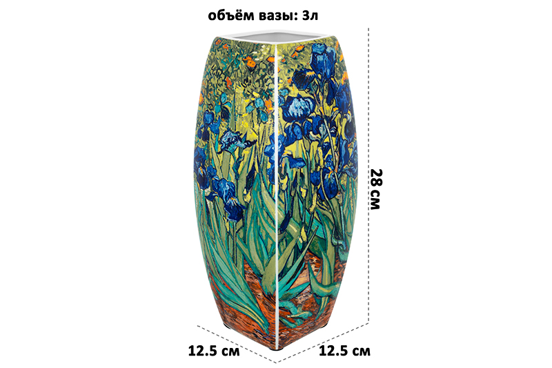 Настольная ваза Elan Gallery "Ирисы" размером 12,5х12,5х28 см и объёмом 3 литра прямоугольной формы выполнена из фарфора нового поколения new bone china. Благодаря современным технологиям этот вид не уступает традиционному костяному фарфору в прочности, но гораздо экологичнее в производстве. В коллекции бренда Elan Gallery можно найти много красивой посуды и предметов декора с изображениями по мотивам шедевров мировой живописи! Высокая вазочка украшена репродукцией картины известного художника Ван Гога. Яркий и узнаваемый сюжет на фарфоровом изделии удачно впишется в любой стиль интерьера, добавляя красоты и романтики. Интерьерная ваза подойдёт для размещения букетов, искусственных цветов или сухоцветов. Она послужит элементом декора вашего дома и поможет украсить его любыми растениями. Как красиво будут смотреться букеты из живых цветов и веточек на кухне и в любой комнате! Поставьте на видное место розы, тюльпаны или вербу для оформления интерьера в квартире. Интерьерная ваза украсит комнату даже без наполнения и подойдёт для создания декоративных композиций на журнальном столике или полке. Эргономичная форма позволит поставить в неё цветы с длинными стеблями. Не рекомендуется применять абразивные моющие средства. Поставляется в прочной красочной коробке. Станет шикарным подарком вашим близким на любой праздник. Благодаря стильной коробочке вам не понадобится дополнительная подарочная упаковка. Сделайте сюрприз ценителям искусства! Красивая фарфоровая ваза с рисунком станет украшением вашего дома и подчеркнёт красоту любого цветка. Ознакомьтесь с другими товарами для дома от Elan Gallery, здесь вы найдёте всё для создания домашнего уюта!
